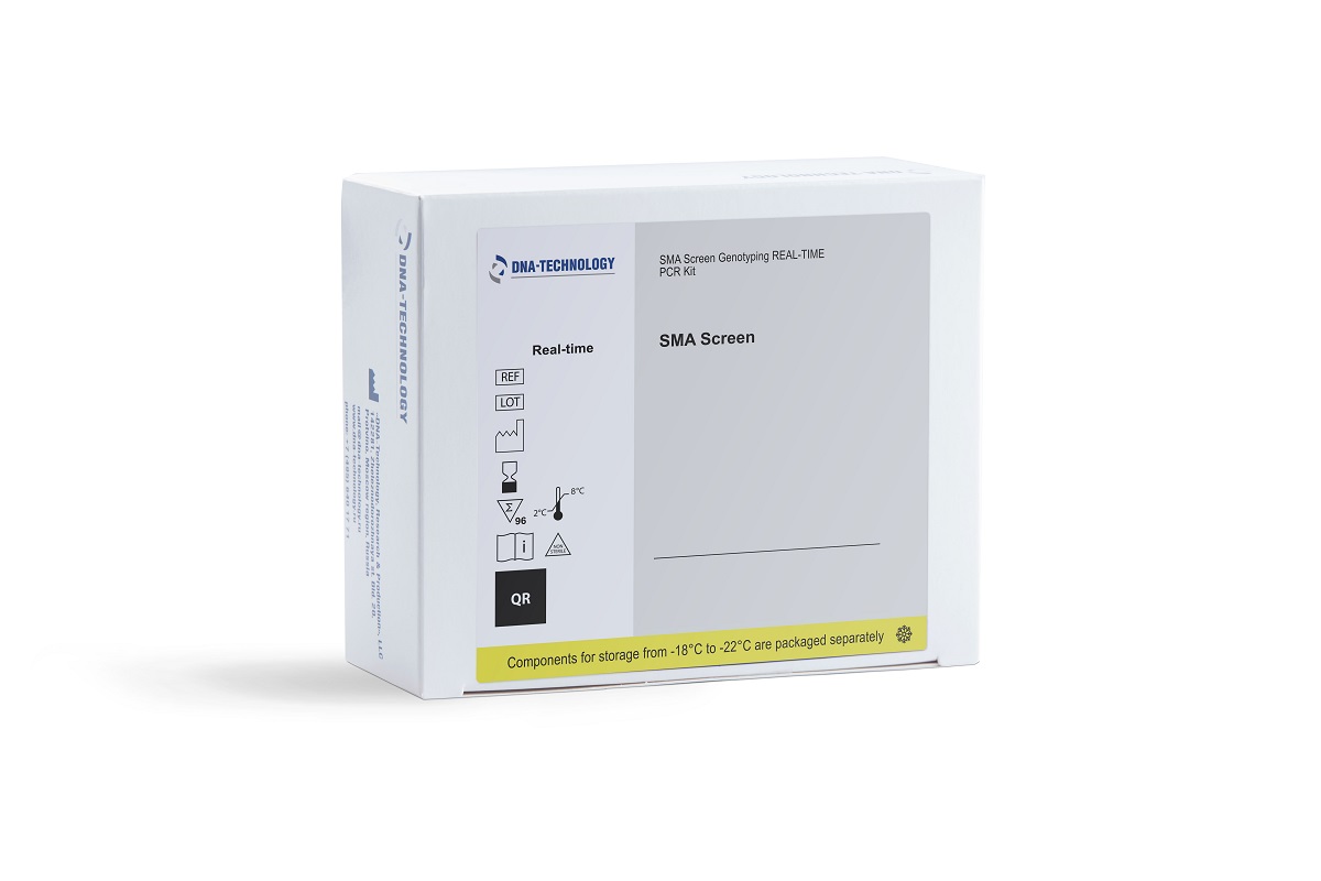 The SMA Screen Genotyping REAL-TIME PCR Kit is designed to detect homozygous and heterozygous deletions of exon 7 of the SMN1 gene associated with development of spinal muscular atrophy (SMA 5q) in human biological material (whole blood) by real-time PCR.