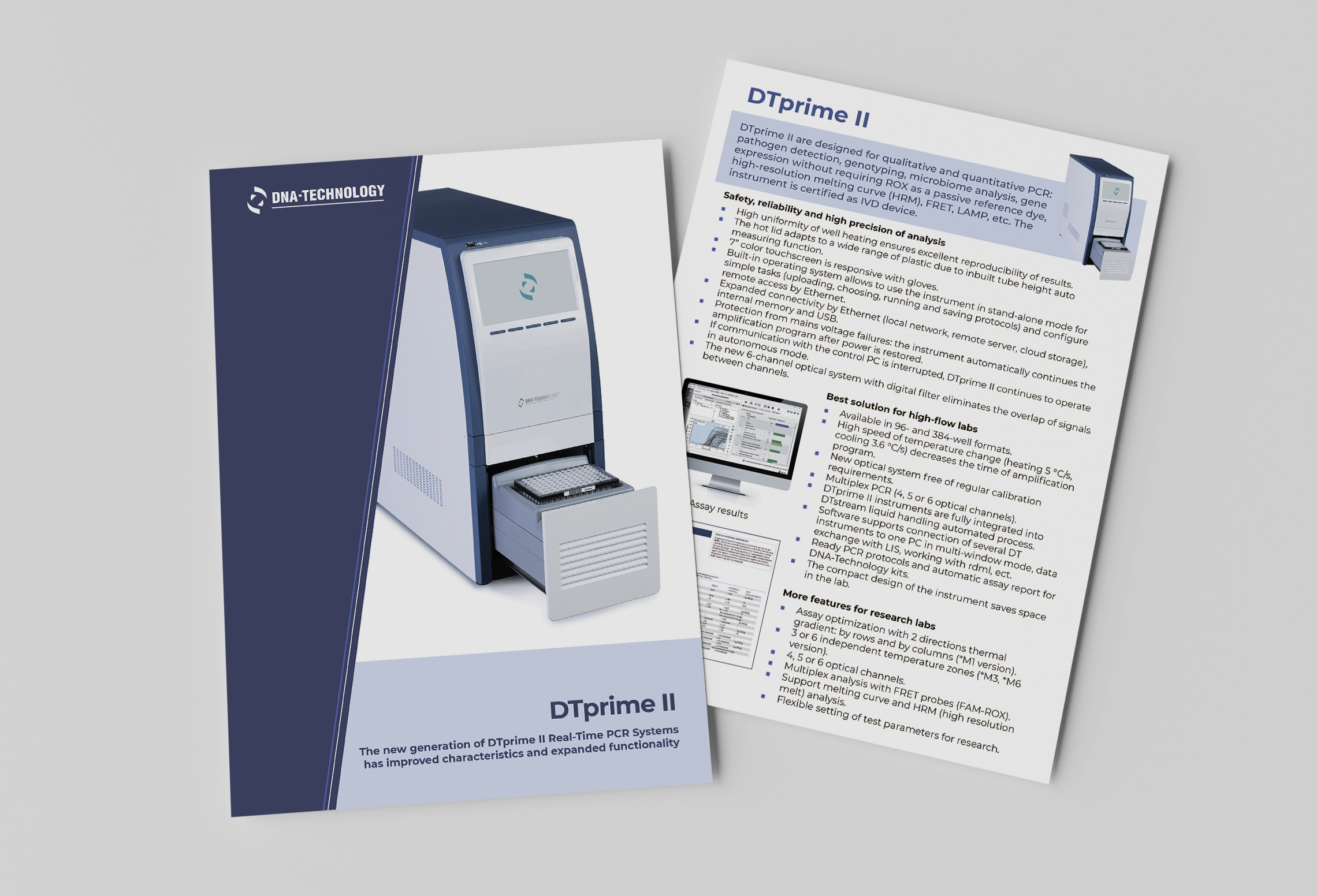 The new generation of DTprime II Real-Time PCR Systems has improved characteristics and expanded functionality. DTprime II are designed for qualitative and quantitative PCR: pathogen detection, genotyping, microbiome analysis, gene expression without requiring ROX as a passive reference dye, high-resolution melting curve (HRM), FRET, LAMP, etc. For research use only.